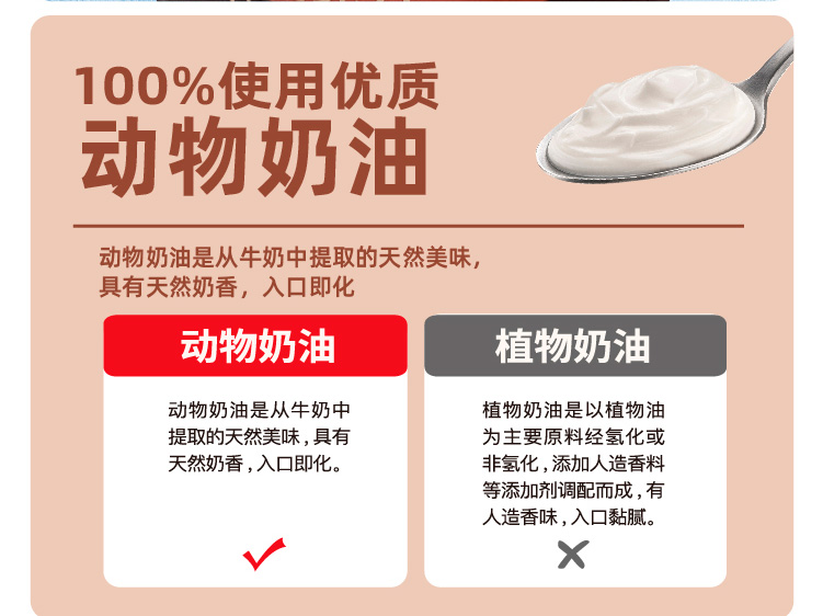 特色原料:100%使用优质动物奶油